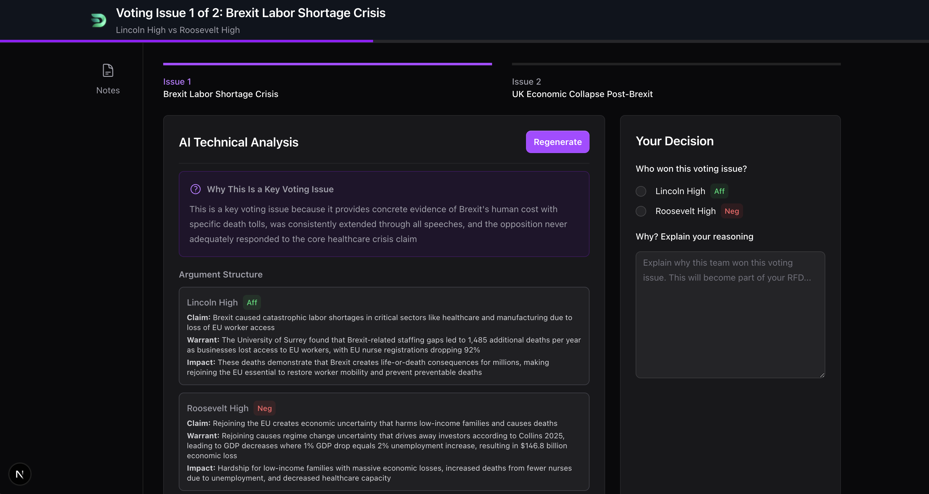 - Understanding AI Analysis - How AI identifies voting issues and tracks arguments