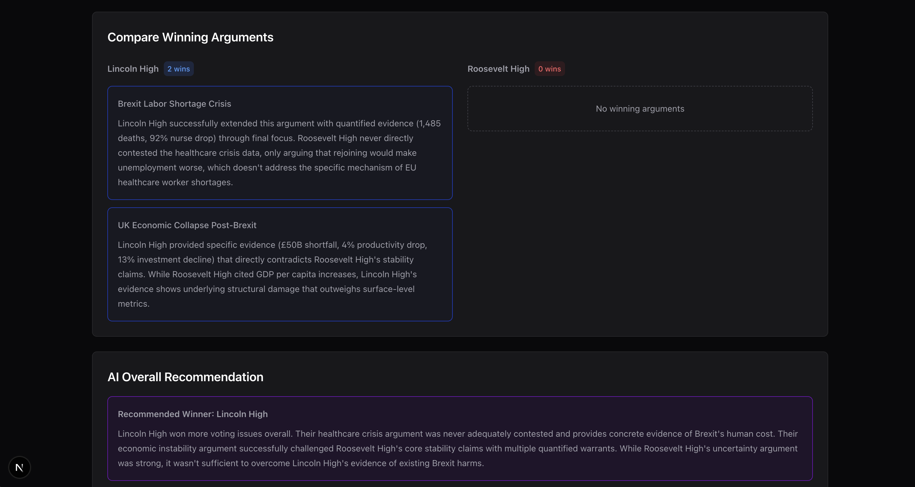 Our recommendation is based on technical factors like argument structure, extension, and responses. But you make the final call. You might weigh things differently based on evidence quality, impact, or other factors we can't measure.